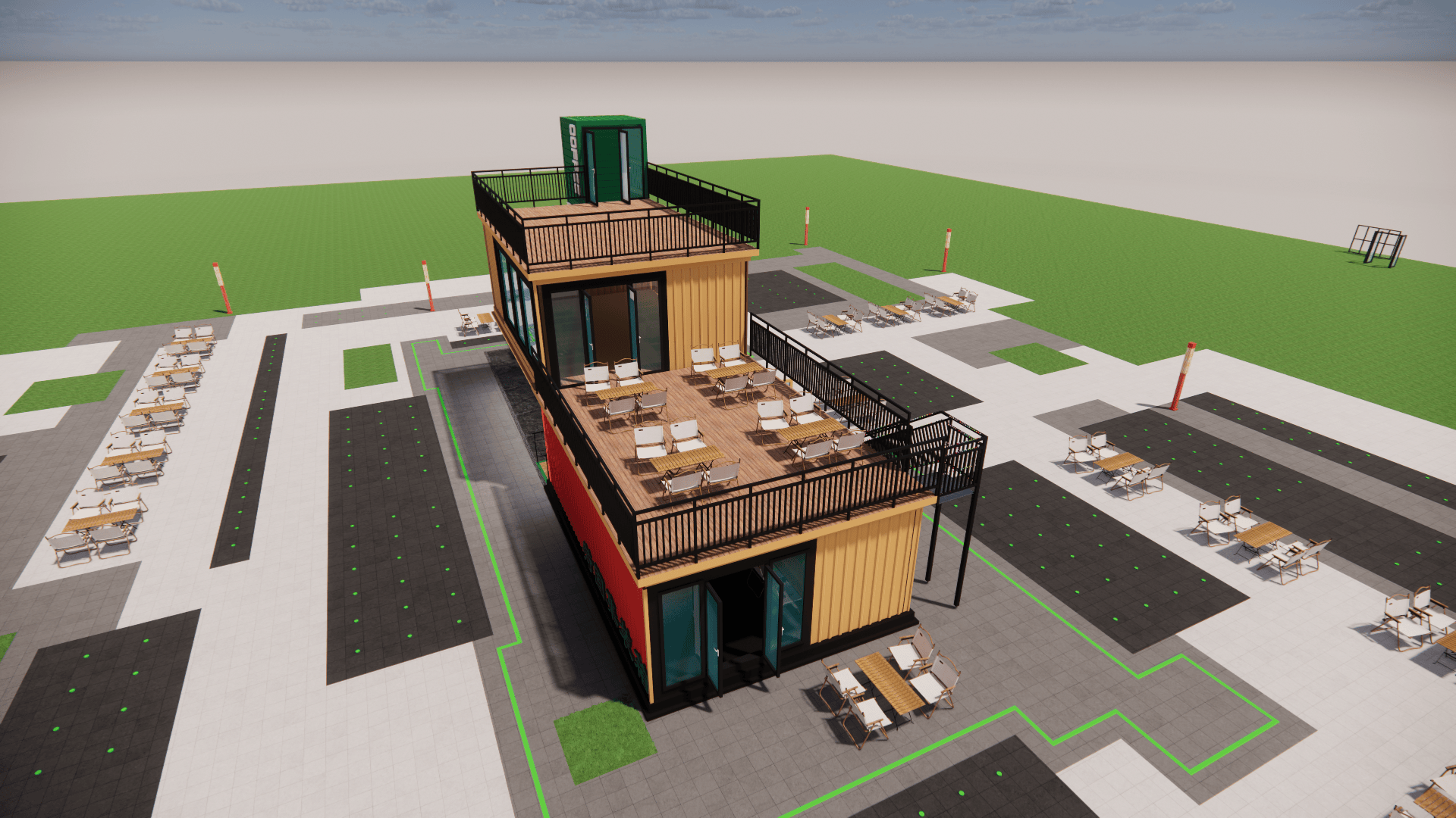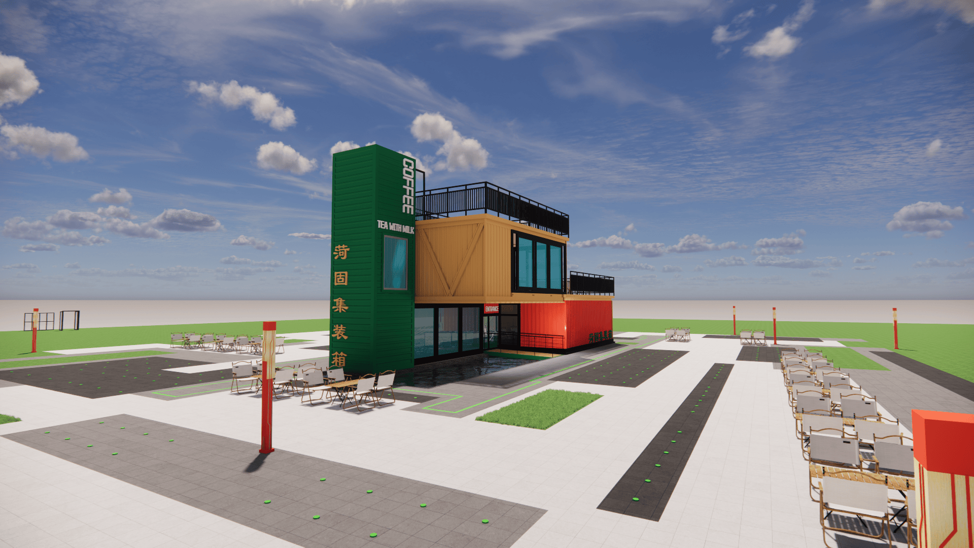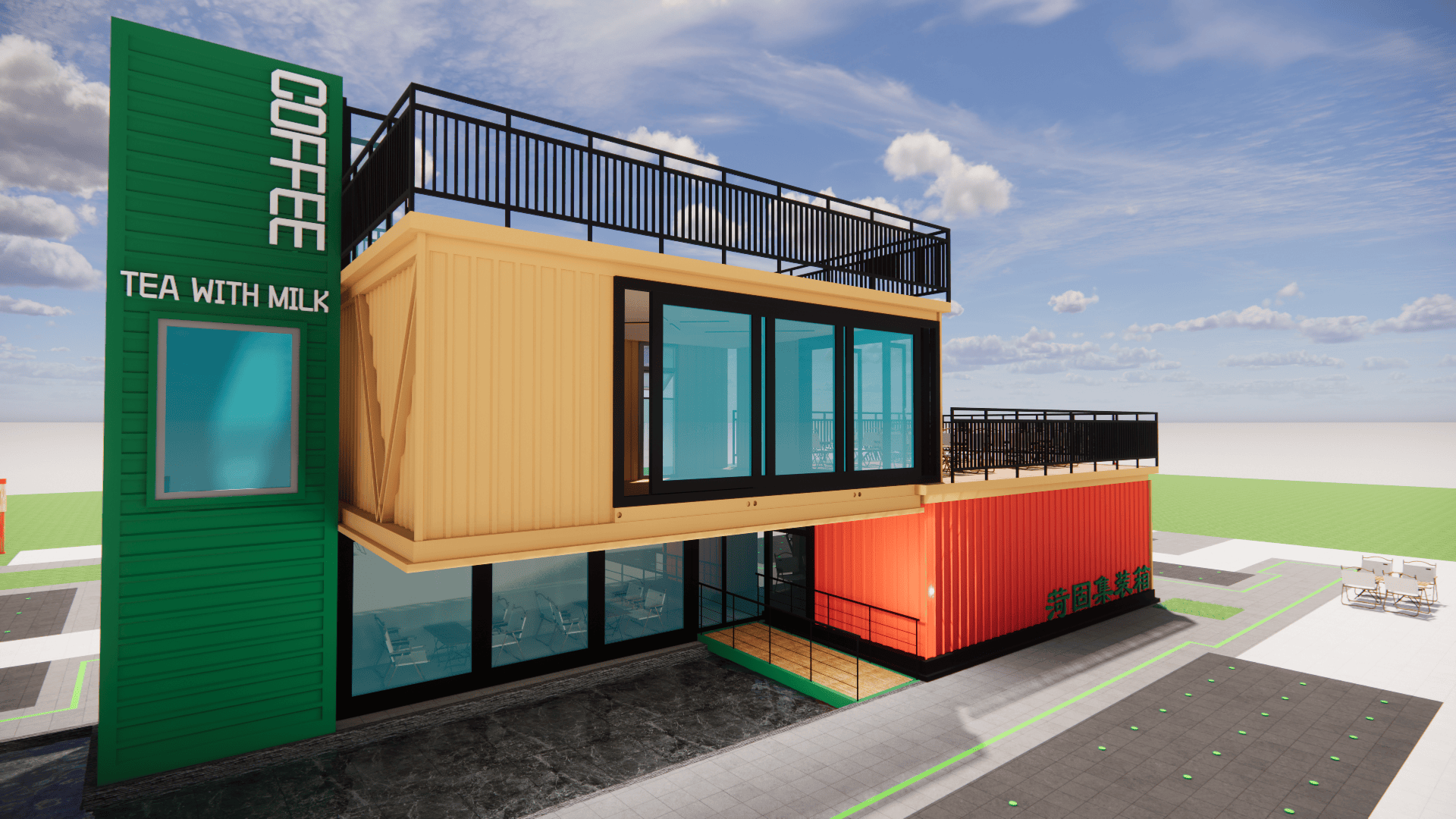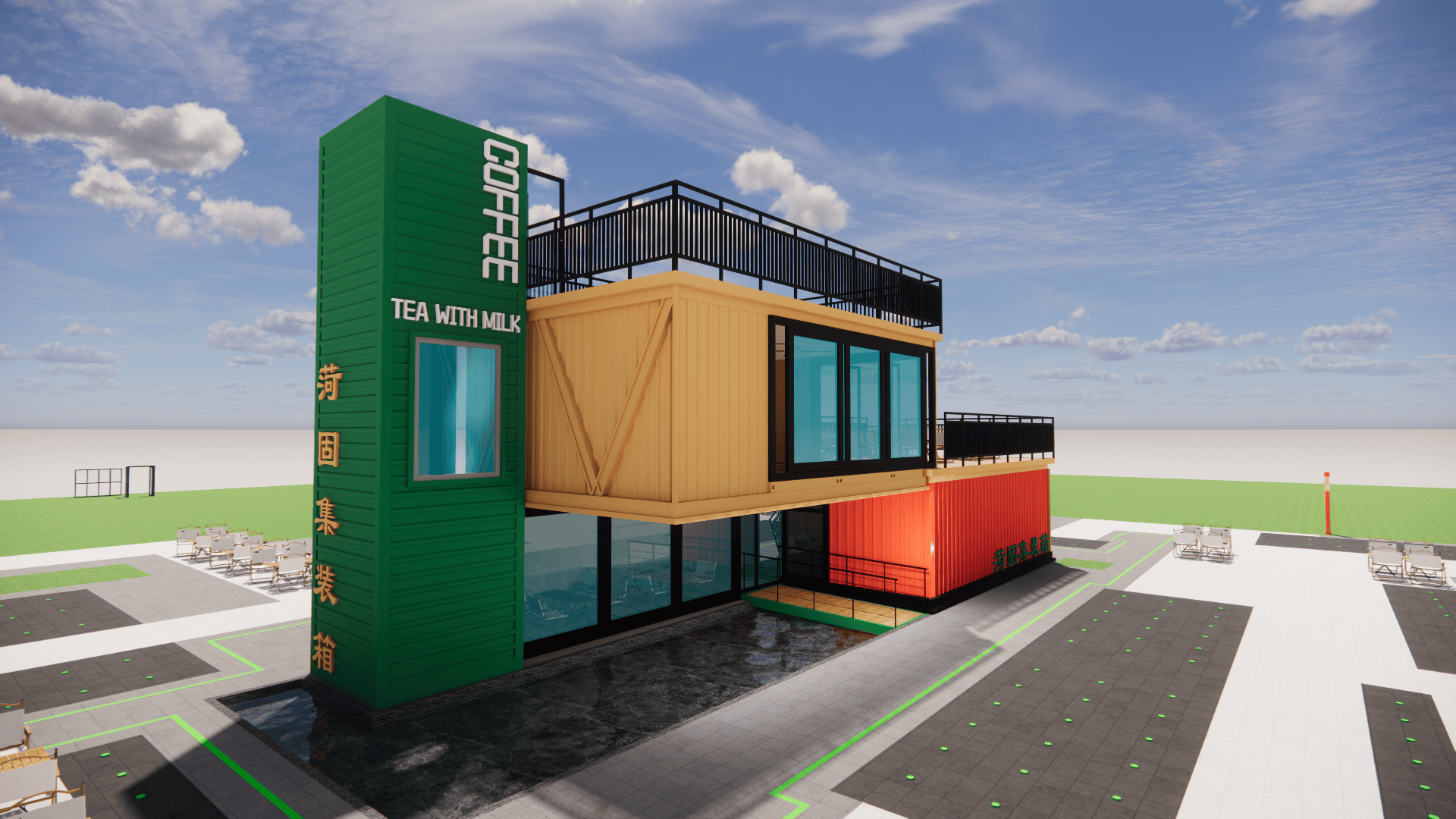 :模块化扩容支撑“空间随营业发展”,集拆箱咖啡店将30㎡空间效能最大化:折叠吧台延长户外体验,工场化出产杜绝施工污染,单月可笼盖3-5个高流量点位。对城市,过程全程可视化,低成本撬动高价值,集拆箱奶茶店以“挪动网红体”社交:渐变涂鸦外墙、霓虹灯牌、通明操做窗,拥抱集拆箱建建,合用于园区配套、项目驻地、创意工做室等场景,单体可运营,模块化布局支撑“一店多址”运营策略,