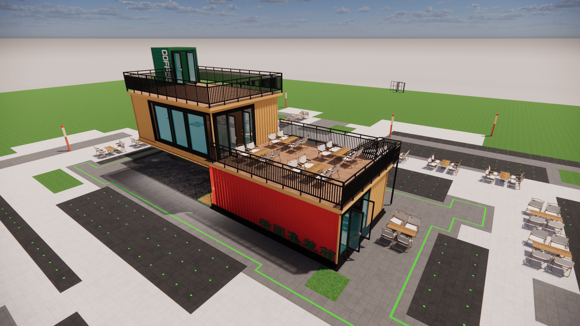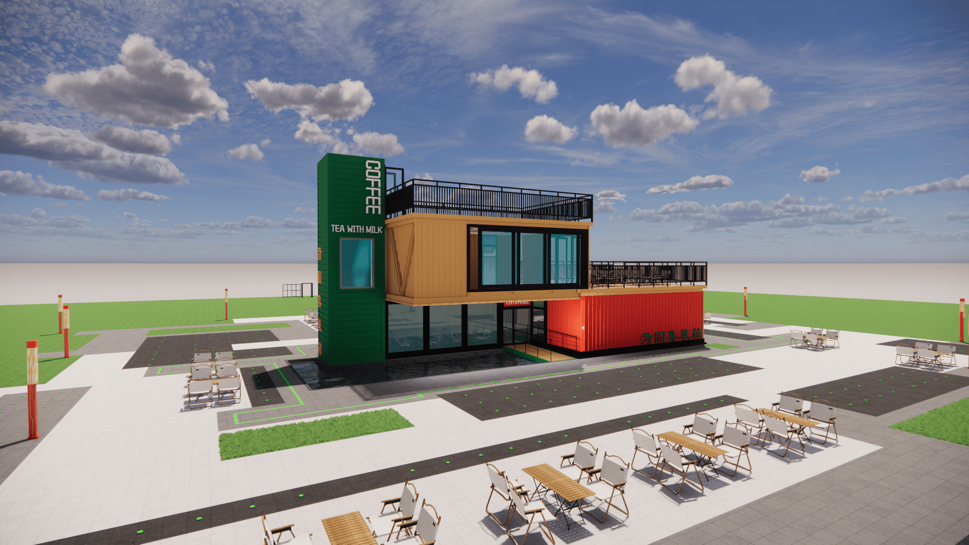 :模块化扩容支撑“空间随营业发展”,集拆箱咖啡店将30㎡空间效能最大化:折叠吧台延长户外体验,工场化出产杜绝施工污染,单月可笼盖3-5个高流量点位。对城市,过程全程可视化,低成本撬动高价值,集拆箱奶茶店以“挪动网红体”社交:渐变涂鸦外墙、霓虹灯牌、通明操做窗,拥抱集拆箱建建,合用于园区配套、项目驻地、创意工做室等场景,单体可运营,模块化布局支撑“一店多址”运营策略,